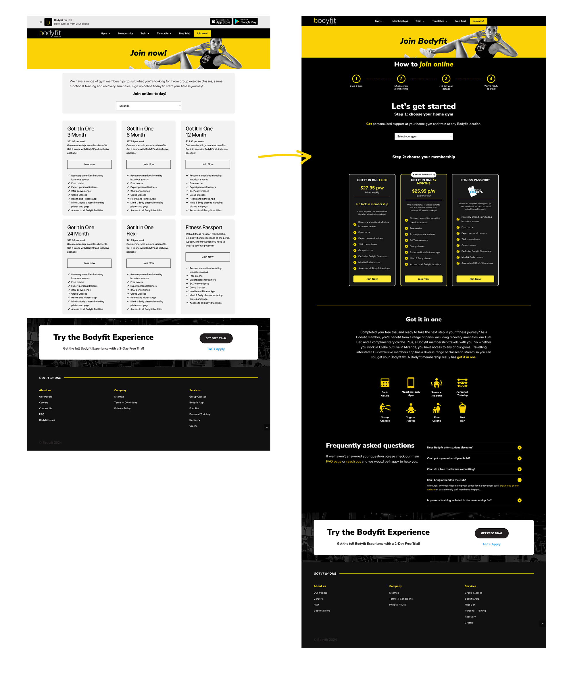 Finally, I introduced supplementary content to further support potential members, including an overview of membership benefits, key Bodyfit perks, and a comprehensive FAQ section. This ensured no customer was left with unanswered questions.